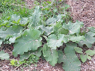 Some of last years potatoes , I think the varieties were Charlotte and Jersey Royal , I left in the ground are growing well with no frost damage from last weeks frost, they are about 6 inch high plants now, so I will now plant the big crop of them for this year.